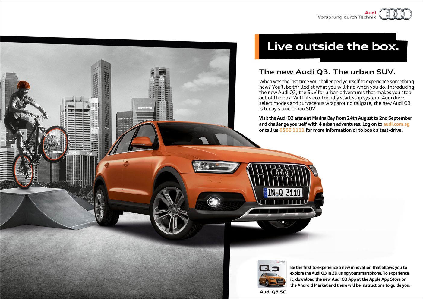 ARworks prepared the mostly Augmented Reality Audi Q3 SG application for the Singaporean Audi importeur, which was used as a key element of the launch communication of this new model in September. The app presents the new car in 3 different AR views.