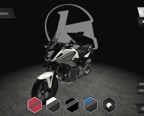 The Honda Karasna motorbike shop asked us to create a solution in which the user can visualize and customize Honda motorbikes. With the help of augmented reality (AR) technology, every potential customer can observe the stunning 3D models in within the showroom environment. Moreover, they have the possibility to customize the bikes according to the available colours, which the Karasna team can deliver. Besides the wide range of individual choices, there are built-in buttons for the official Honda colors as well.